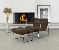 SHABBY Armlehnsessel chrom glanz, Leder JESOLO 2547-69 Testa Moro, Kontrast Naht