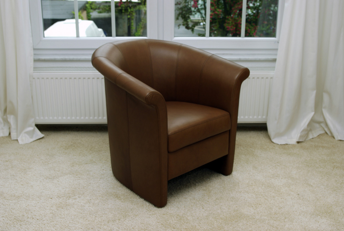 Der Cocktailsessel GRACE aus der Polstermöbelmanufaktur BIELEFELDER WERKSTATTEN ist ein eleganter, rund geformter Einzelsessel mit einem einzigartigen Sitzkomfort. Der Sessel ist mit dem Reinanilinleder PROVENCE nougat bezogen. Die Nähte sind dunkelbraun abgesetzt, wodurch die Form noch markanter in Szene gesetzt wird.