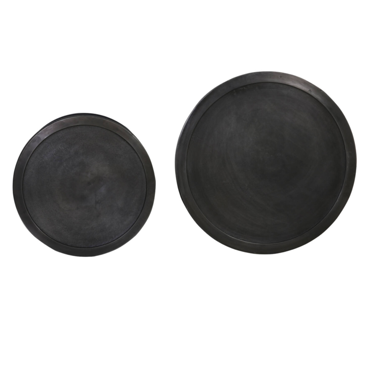 TALCA Beistelltisch-Set 2-tlg. Lote antik Tischplatten: Rohalu anthrazit, mit abgesenkter Innenfläche Untergestelle: Eisen matt-schwarz Abmessungen: D.40cm Höhe 60cm und D.35cm Höhe 51cm Lieferung frachtfrei dt. Festland